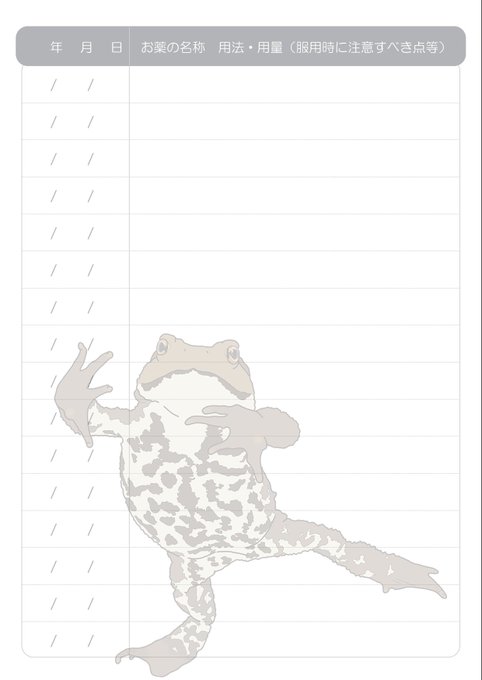 お薬手帳の裏表紙と、