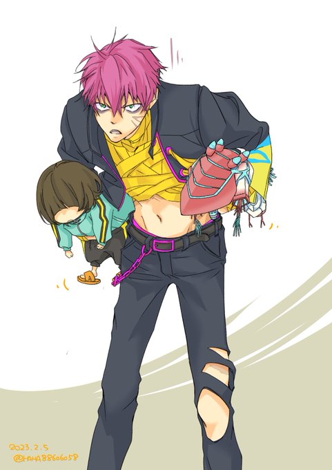 カンガルーにシンデレラフィットしたオニジャと ハスキーにシンデレラフィットするガウマさん落書き カッパとテング添え