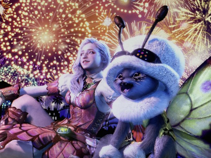 笛が欲しくてフレさんにご一緒してもらって極白虎へ!! 逆さに持たれてバタバタする自機! 2人で極白虎を倒せる日が来るとは…✨