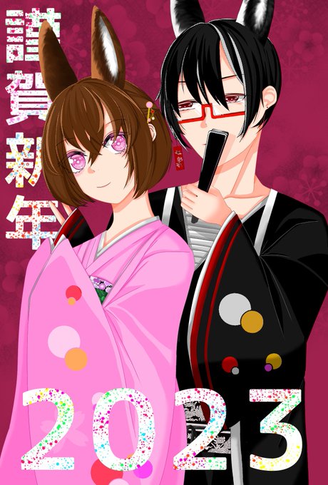 #年賀状2023 左側がうさ耳あり 右側がうさ耳なし うさ耳むっず( ´﹀` ٥ ).。Oஇ 今年もよろしく( * ´꒳`* )੭"