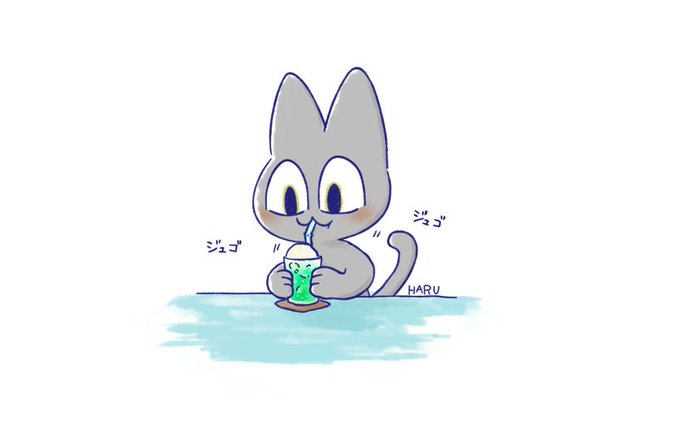 メロンソーダフロートに夢中のロイ #イラスト #オリジナル #ねこキャラ #ロイとルイスとアンデルセン #ほのぼの