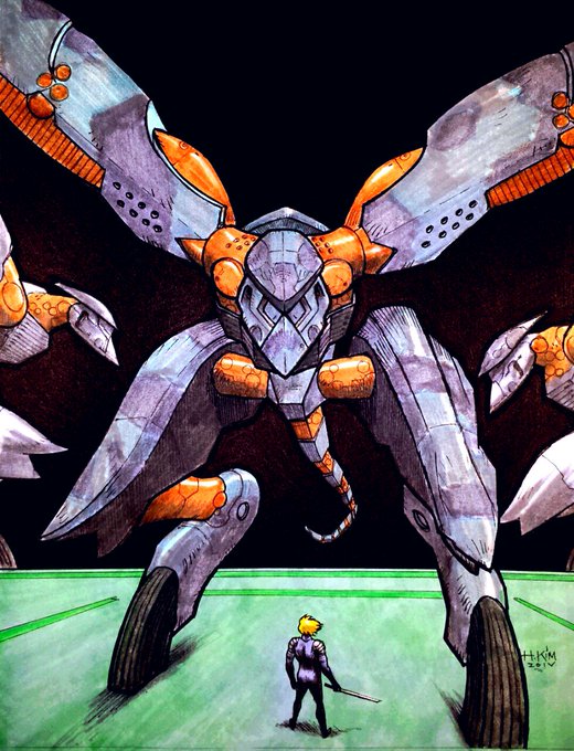 Happy Big Shell anniversary! Here's a #MGS2 #Raiden vs Metal Gear RAY drawing by me. @HIDEO_KOJIMA_EN @Kojima_Hideo