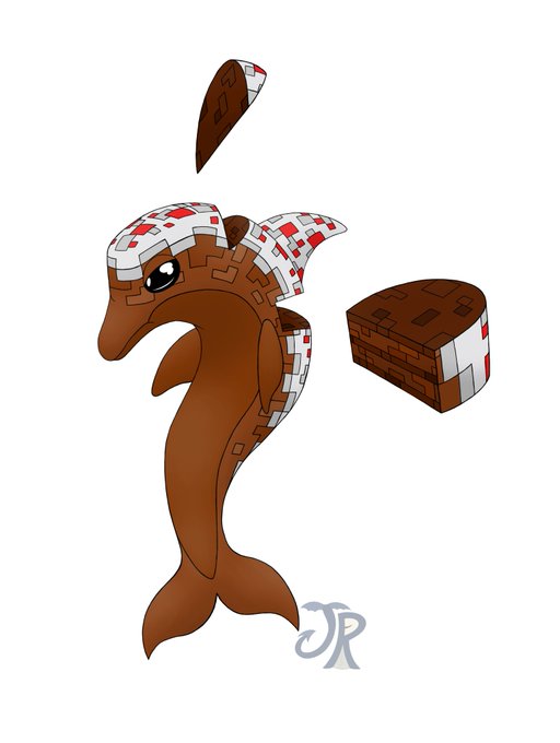 A couple of art challenge pictures, Ziffer as a kobold & the other I had to "Design a cake-themed character" so I decided to make a Minecraft cake dolphin.