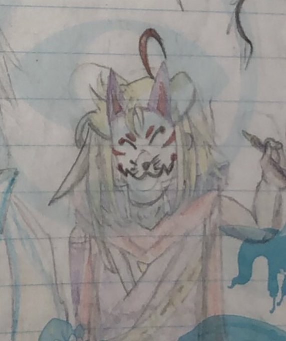 画質が悪かったから上げ直し。 #ペン画 #イラスト #狐のお面