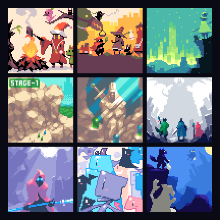 ドット絵「64x64サイズ画像作風色々まとめ弐」ドットピクト!にて作画した64x64サイズのドット絵まとめ画像その弐です。 まとめ壱よりカメラ引き気味が多め #dotpict #pixelart