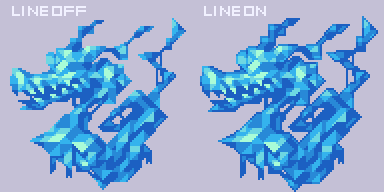岩表現補足 過去ドット「グロブルドラゴン」これは本体が8色、目のハイライト白1色の計9色。色々初期設計しないと大きい岩の固まり表現は作業がつらくなる一方→ヤメタもしくはサイズ縮小しよう、になるので注意が必要、いやほんとに