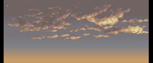 背景おさらい中なので 某原作物ゲーム背景いくつか 約11年前?位。1枚絵タイプのドット絵背景最後の仕事。16x16ドットを1パレットごとに管理して作画してた 832x336ドット #昔に打ったドット絵を貼って初心を思い出そう大会