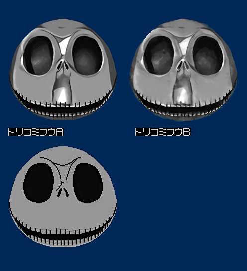 waifu2xにてドット絵を変換。メッシュ部分の変換差が色々あって面白い。というか変換性能凄い。。