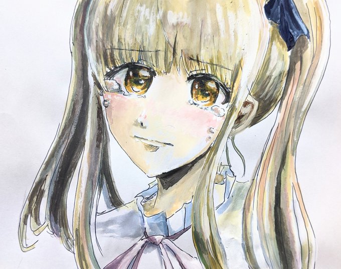 #色鉛筆イラスト #アナログイラスト #絵柄が好みって人にフォローされたい #絵描きさんと繋がりたい #アナログ絵師さんと繋がりたい 左…色鉛筆 右…透明水彩