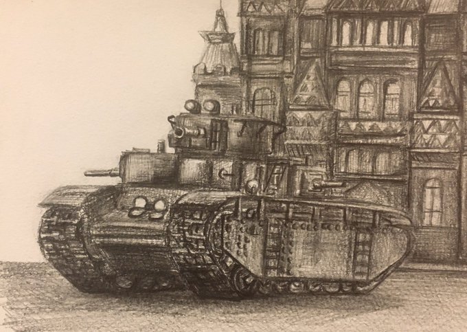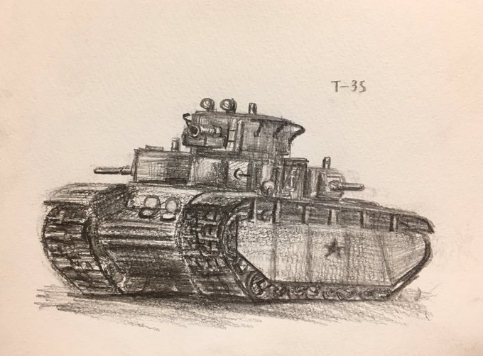 先日描いたT-35に少し加筆しました( ˙▿˙ ) 背景で少し迷走していたので途中経過も載せてみます∠(`・ω・´) https://t.co/0wasfkdzz5