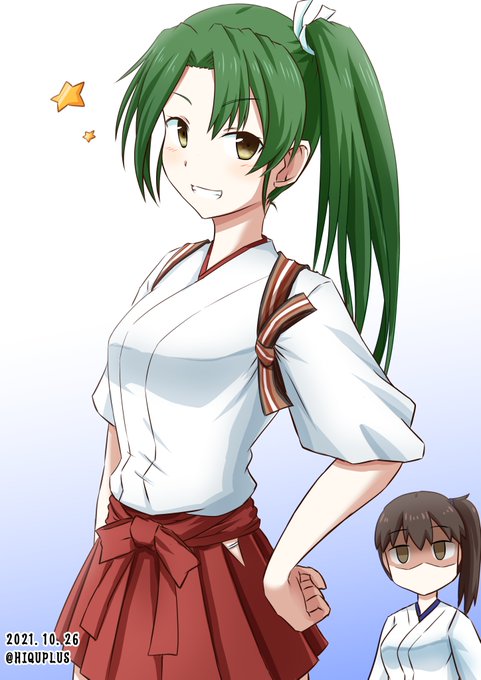 #艦これ版深夜の真剣お絵描き60分一本勝負 #艦これ版真剣お絵描き60分一本勝負_20211026 #瑞鶴 #加賀 これは気分が高揚するズイ!!♪