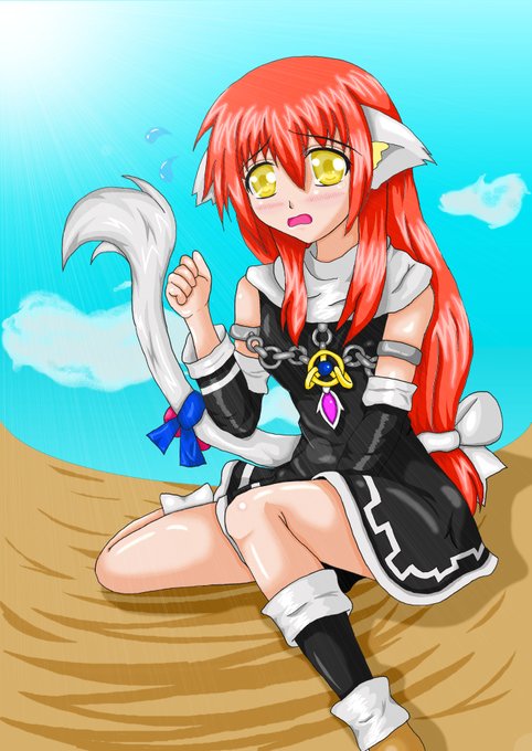 #これを見た人は自分の看板娘の画像を貼れ またまた便乗~(*´▽`*) うちの子で一番人気でポニーテールのトモミちゃん(上側)と初めてのオリキャラでオッドアイのレミナさん(下側)
