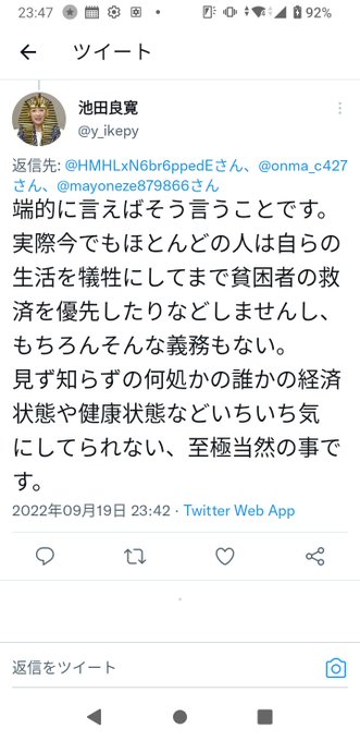 @yamikawadays @123koomuinga @hanafusa2009 白衣さん、こんばんは。ノーマスク信者は、他人が病気に苦しもうが、困窮して餓死しようが、自分の生活に関係ないから、どうでもいいそうです。人として受け入れられる主張でしょうか?自分さえよければいいと認めたのです。
