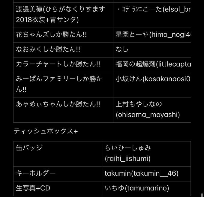 先程抽選を全て完了しました!! スペース内でも言ったのですがひなくりに来られる方にはなるべく直接お渡ししたいと思ってます!! 来れない方は郵送で大丈夫なので後日住所等のお話をDMでします!! 今回はプレゼント企画参加してくれてありがとうございました!! #渡園涼太のプレゼント企画