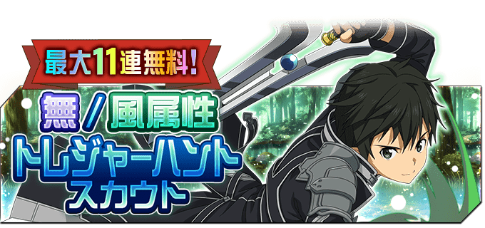 出来事 : 最大11連無料!! 無/風属性トレジャーハントスカウト!! 更新日 : 2020-11-12 **期間** 11/12(木) 00:00 ~ 11/15(日) 23:59まで リンク : https://t.co/56Ux4LgLZT #メモデフ #saomd #메모리_디프래그