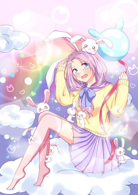 【夢の中の兎の戯れ】 #オリジナルイラスト #ゆめかわ #絵描きさんと繋がりたい #絵柄が好みって人にフォローされたい