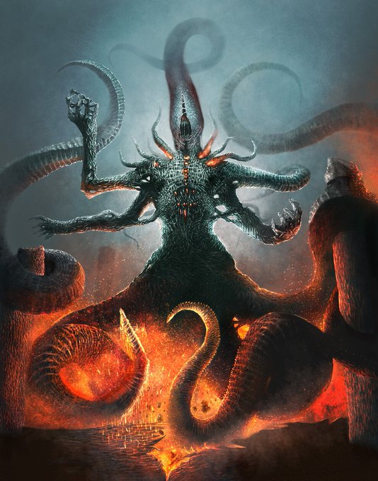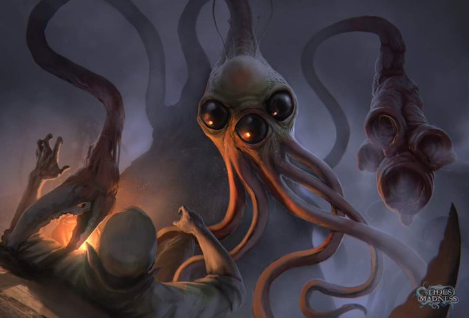 🦑What do we know of the world & the universe about us? Our means of receiving impressions are absurdly few & our notions of objects infinitely narrow. We see things only as we are constructed to see them & can gain no idea of their true nature🎨Christian Bravery🦑#Lovecraftian