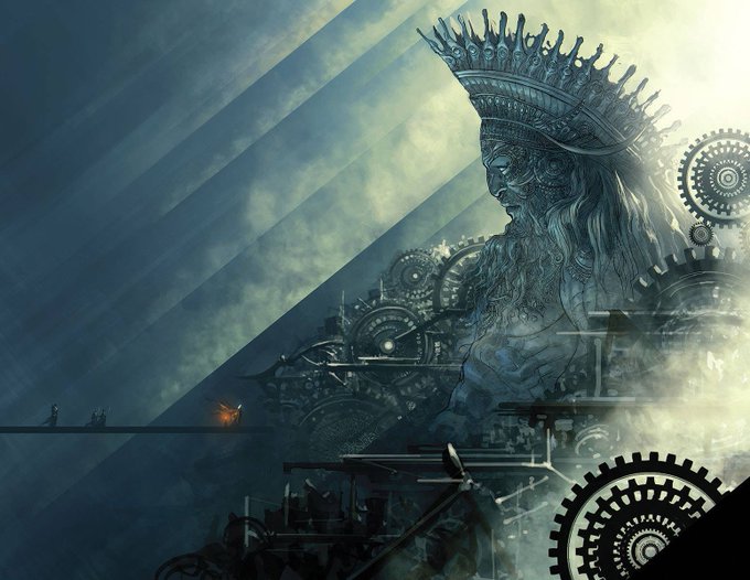 🦑When Tillinghast was silent I fancied myself in some vast & incredible temple of long-dead gods; some vague edifice of innumerable black stone columns reaching up from a floor of damp slabs to a cloudy height beyond the range of my vision🎨James McCarthy🦑#HPLovecraft #Mythos