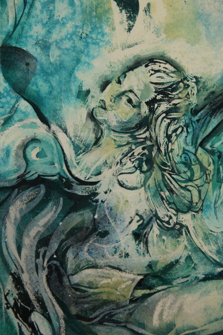 My latest commission 'Green Oboist' for Rosie, framed @ArtGraphicsLtd
