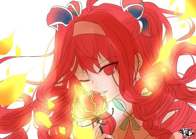 @HTDR_hatidori #オムモグライス深夜の真剣お絵描き60分一本勝負 イォちゃんにぴったりだと思った、炎のユリと言われるグロリオサを持たせてみました