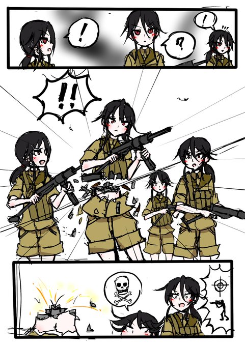 徹底的に作画カロリーを低く押さえたデザインで(自分観点)量産描写しやすくした少女型アンドロイド兵士、二号ちゃんの漫画導入例