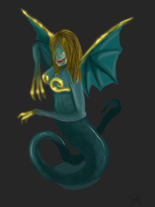 #人外版深夜の真剣お絵描き60分一本勝負 「メリュジーヌ」「鉤爪」「かぎしっぽ」 私の巣穴に入ったの? それはしょうがないわね。