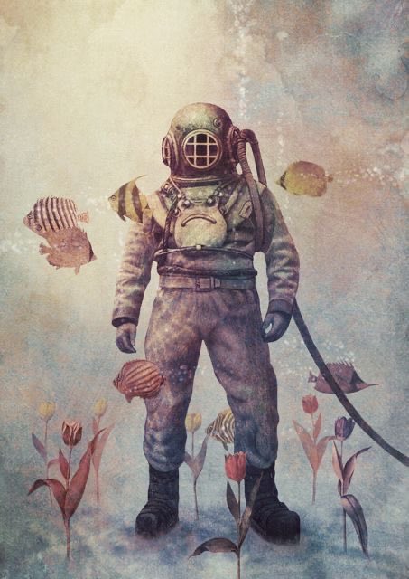 His work is mostly of the feminine kind and his wistful ladies are gorgeous. Love the kiss curl