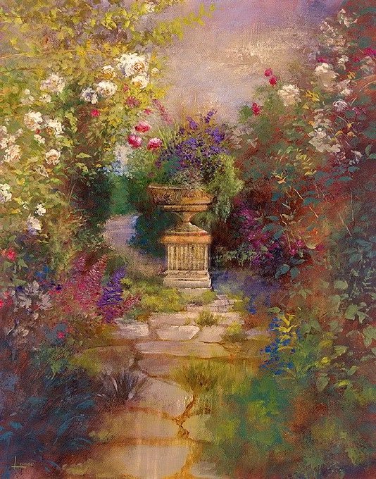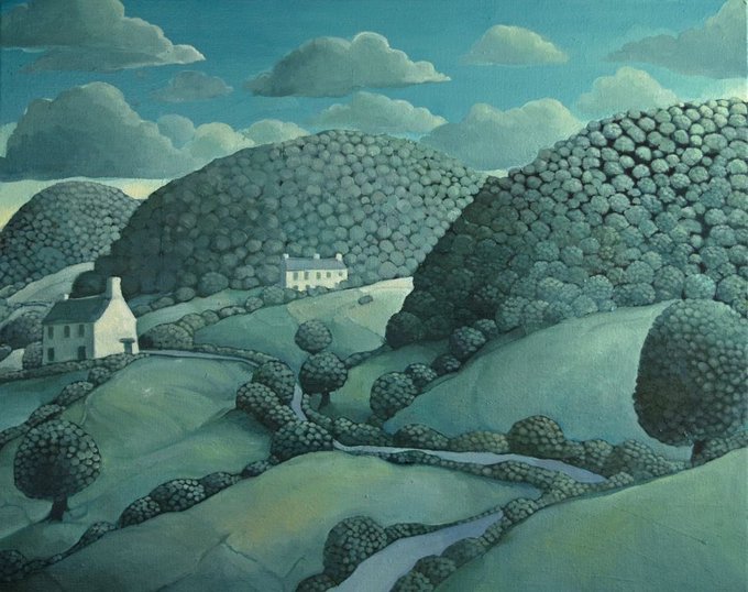 English gardens are his speciality. He’s recently had a solo exhibition at the Catto Gallery. This however is typical of his style. Always a slight threat of something lurking . Back soon 😊 Helen.