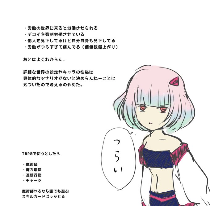 次のセッションはこういう感じのキャラを使う予定(途中)脳筋お嬢様にしようとしたらゆめかわ地雷女になった