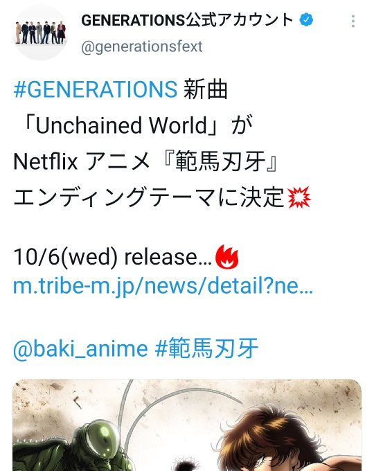 GENERATIONSが刃牙のアニメのED!?