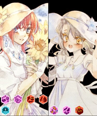 今のハーゼinグリマルのキャラ画像はこんな感じで上がカットイン、左下がホーム、右が立ち絵!(カットイン以外は背景透過してる) ゲームの方で拡大縮小など位置はいじれるけど回転はできないので、イラスト一枚だけ描いて立ち絵の角度だけ変えたのをカットインに置いたりなどやりようは人それぞれ…