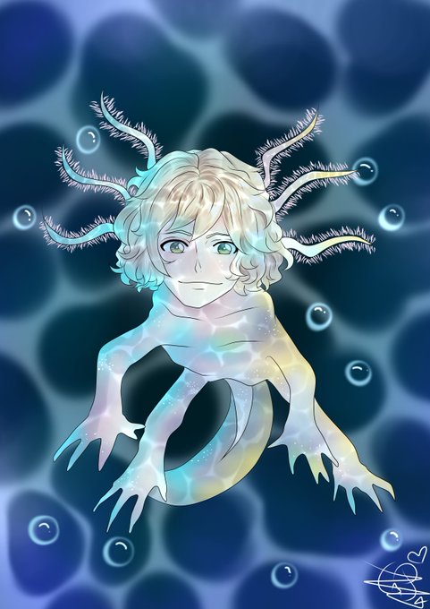 Zum heutigen #Maudadotiermittwoch hab ich ihn als Axolotl gezeichnet xD Danke an die Person für den Vorschlag Kuss geht raus :3