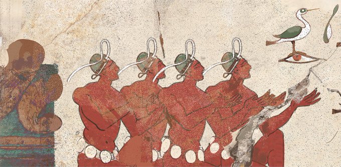Detail of a Kokhlidoi fresco depicting the Four Primordial Stars, painted for Fragments of the Past #painting #mythology #fantasyart #ancienthistory
