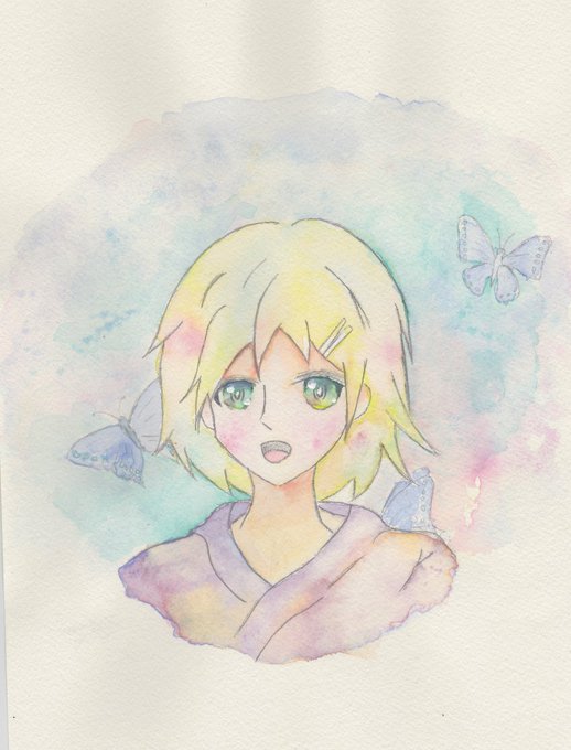 オリジナル描いたよー(^-^)塗り方ちょっと変えた!上のほう紙がへにゃってるのはめを瞑って下さいw #水彩 #絵描きさんと繋がりたい