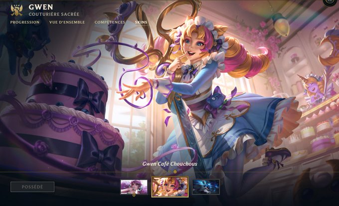 Je viens de tilter mais Gwen Café Chouchous de League Of Legends on lui teint ses cheveux entièrement en rose et ça donne @pawa_chan