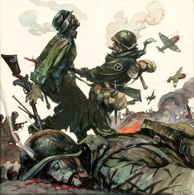 Hake's Auction #224 Sneak Peek! Killer #originalart for the next #HakesAmericana #auction! #FrankFrazetta #BlazingCombat #2 cover art, from a short-lived #WarrenPublishing #warcomic. Another great #Frazetta cover from this series will be shared tomorrow!