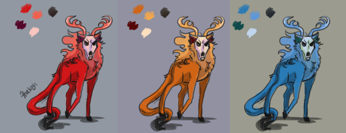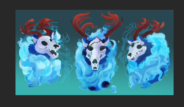Avanza, la idea es mesclar,un leon,lobo, ciervo con tema de fantasma, en si es un personaje de algo que estoy escribendo pero siento se esta pareciendo a un personaje que me gusta mucho a Elias, tendre hayar la manera se distanciar ese parecido.