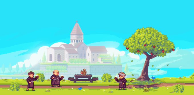 We said we can't tell you much yet about our upcoming project, but we can certainly use @NerdsWe great #pixelart visuals to give you at least some context about it, no? 😉🍻🧐 "Ora et labora. Et beer!"