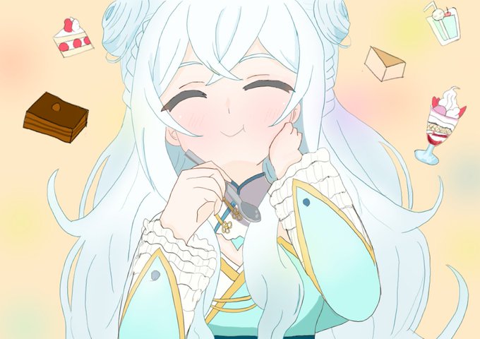 デザートを美味しそうに食べるうるみちゃん描いてみました〜 #白羽うるみ #しらはーと