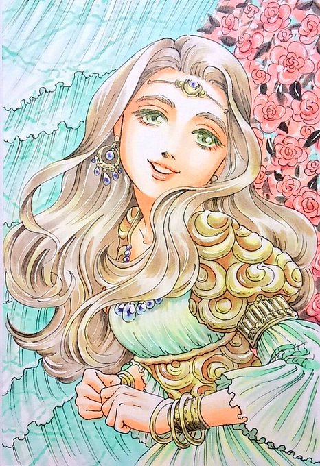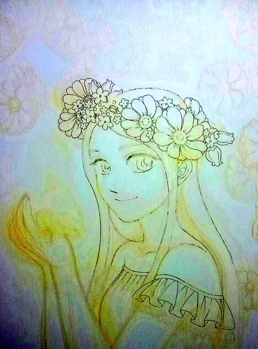 昨日の絵に色を塗ったので久々にタグを。 #絵を描く人の下描きと清書を見てみたい #アナログ絵 #イラスト塾 #絵描きの輪 #絵描き人