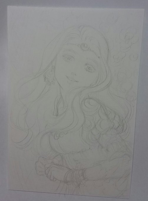 なぞってますφ(..) #アナログ絵 #下描き