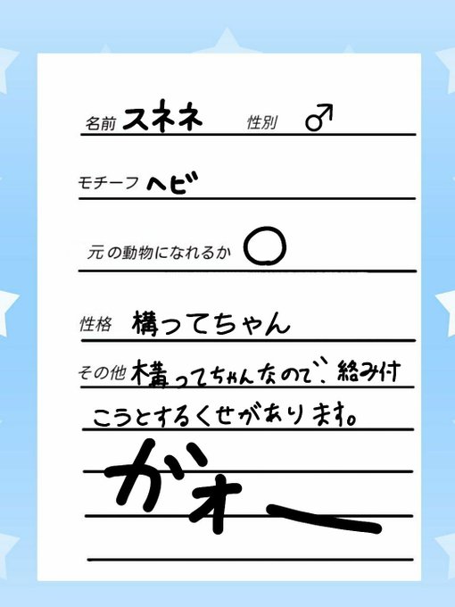 #ケモケロ企画cs @kmkr_kikaku スネネです(「・ω・)「 ガオー