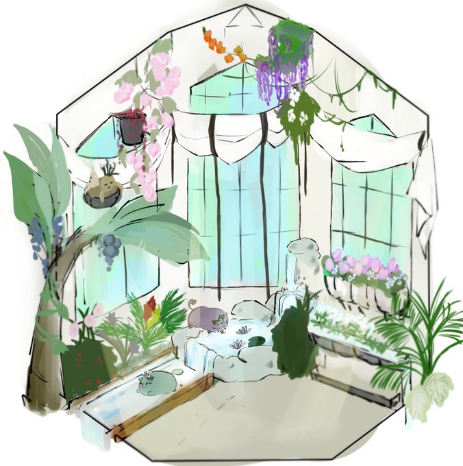 様々な気候の植物が栽培されている。頭の上で植物を育てるじゃきも生息。