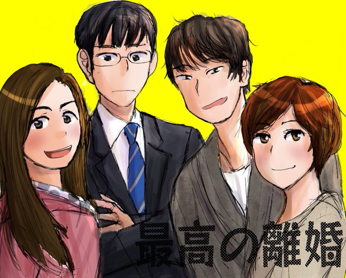 深夜に再放送中のドラマ『最高の離婚』の濱崎夫婦と上原夫婦を描きました 再放送の度毎回観ちゃうくらい好き