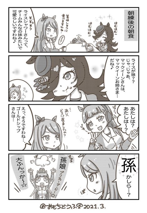 おじいちゃんスイッチ🌟🐴 #ウマ娘プリティーダービー #4コマ漫画 #メジロマックイーン #ゴールドシップ #ライスシャワー