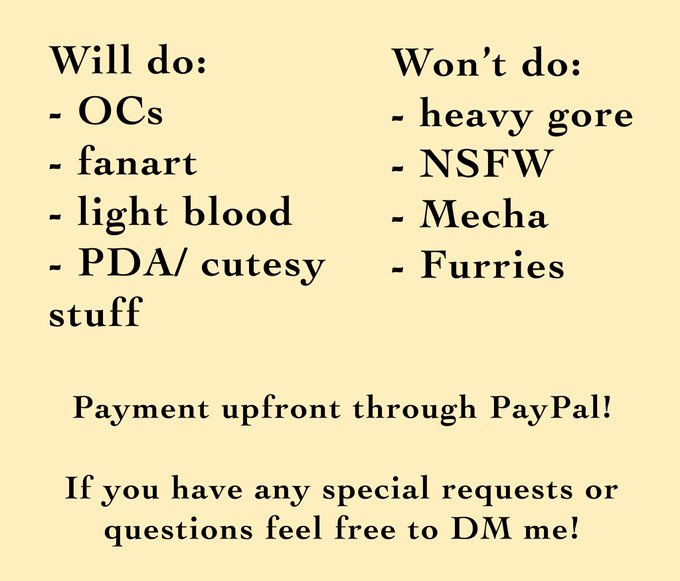 I’m proud to finally open my commissions! If you’re interested or have any questions please feel free to DM me and I’ll help you gladly!