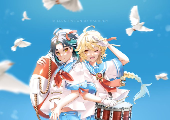 Summer, sun and sailor uniforms ☀️🌊 #原神 #アルベド #Albedo #GenshinImpact #Kazuha #xiao #魈 #空 #aether
