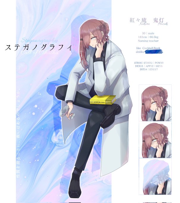 ⿻ 性質を測ることに、 救いはあるのでしょうか。 ────────────── 𝘊𝘢𝘭𝘭 𝘰𝘧 𝘊𝘵𝘩𝘶𝘭𝘩𝘶 『 ステガノグラフィ 』 ⿴𝗛𝗢𝟭 保健室の先生 └ 紅々琉 鬼灯 -𝘒𝘶𝘬𝘶𝘳𝘶 𝘏𝘰𝘻𝘶𝘬𝘪- ──────────────