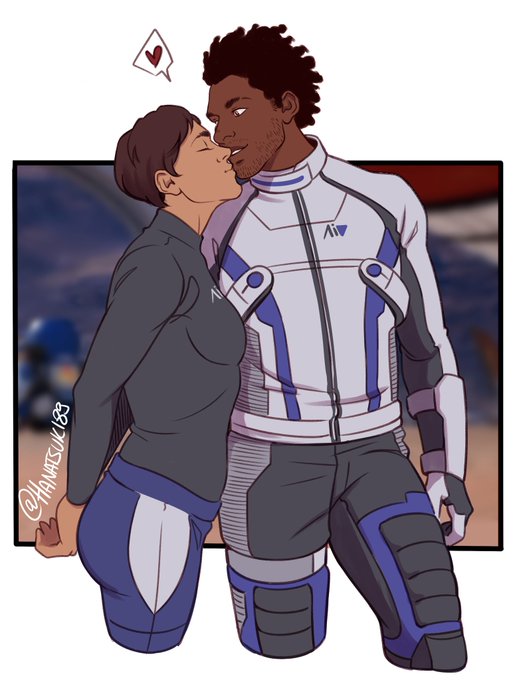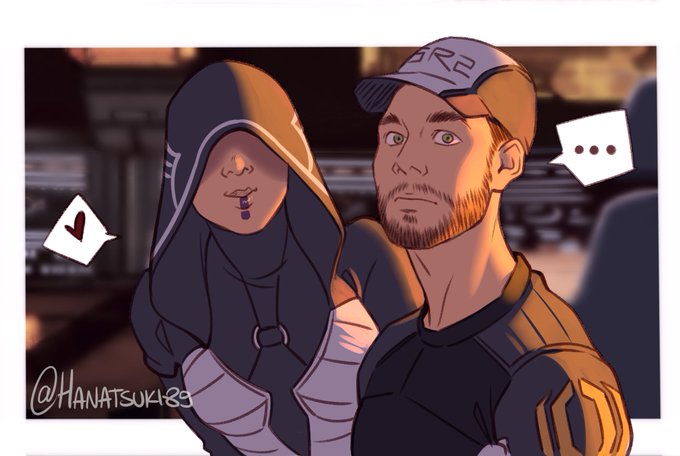 I had the pleasure to work on this comm*ssion for @/therebelarchivist on tumblr! Her Andrew Shepard, Liara and their blue children <3