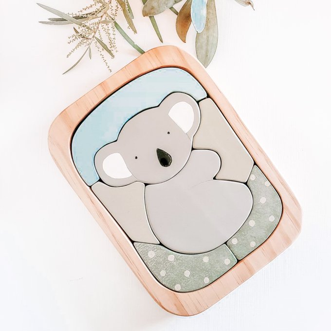 How cute!! We love this little koala puzzle from Miss Molly's Toys. Based in East Gippsland, Victoria, Miss Molly’s creates a wide range of artisan wooden toys including; vehicles, houses, animal shapes, puzzles, baby rattles and sweet peg dolls.